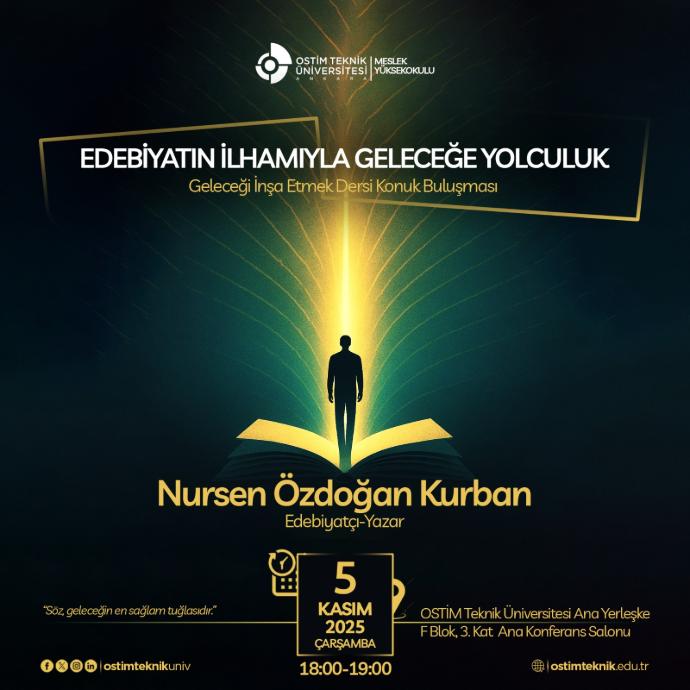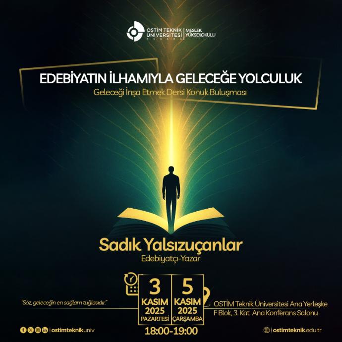 OSTİM Teknik Üniversitesi Meslek Yüksekokulu, öğrencilerini edebiyatın dönüştürücü gücüyle buluşturdu. GIE 151 – Geleceği İnşa Etmek dersi kapsamında düzenlenen “Edebiyatın İlhamıyla Geleceğe Yolculuk” temalı konuk buluşmalarında, öğrenciler edebiyat dünyasının iki değerli ismiyle bir araya geldi.